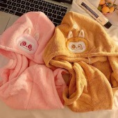 浴帽卡通可爱兔耳朵珊瑚绒干发帽加厚柔软擦头巾吸水速干浴帽外贸