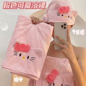 浴裙KT猫珊瑚绒毛巾浴巾干发帽浴裙家用柔软吸水速干可裹浴袍裹巾
