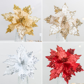 圣诞节装饰品仿真圣诞花塑料花绒布花圣诞树配件挂饰金粉场景布置