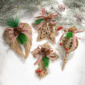 圣诞装饰品塑胶植绒闪粉吊饰圣诞树居家创意装扮橱窗布置红色挂件