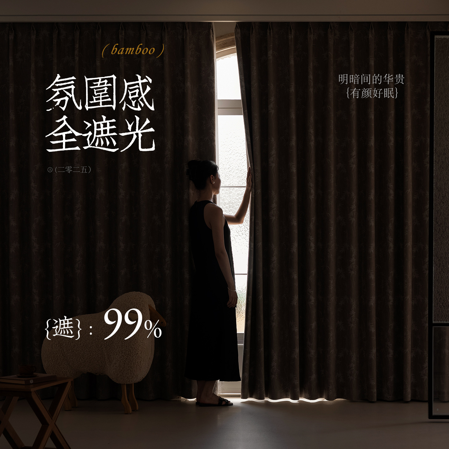 全遮光窗帘2025新款黑金丹麦丝绒奶油风卧室客厅现代简约亲肤环保