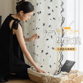法式黑玫瑰纱帘透光不透人2025新款卧室客厅阳台立体刺绣隔断窗纱