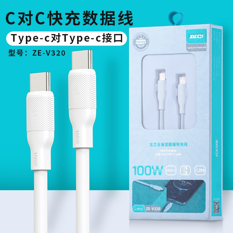 品牌-V320双头TYPE-C充电线100W 五芯闪充线 1.2米数据线耐用防冻