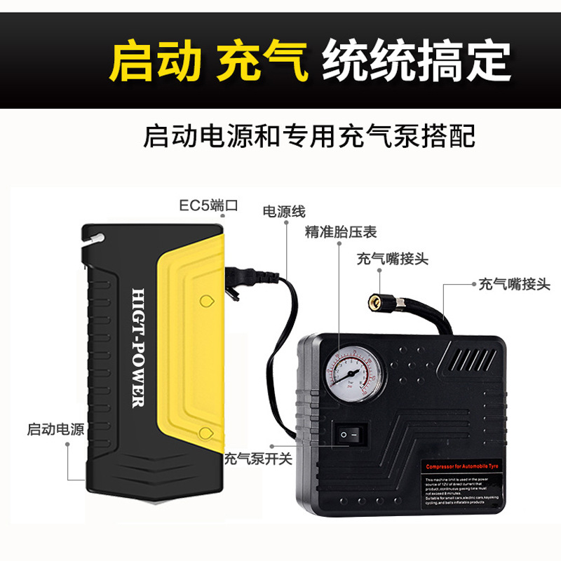 汽车用电瓶应急启动电源配打气泵打火搭电救援神器充气泵一件代发