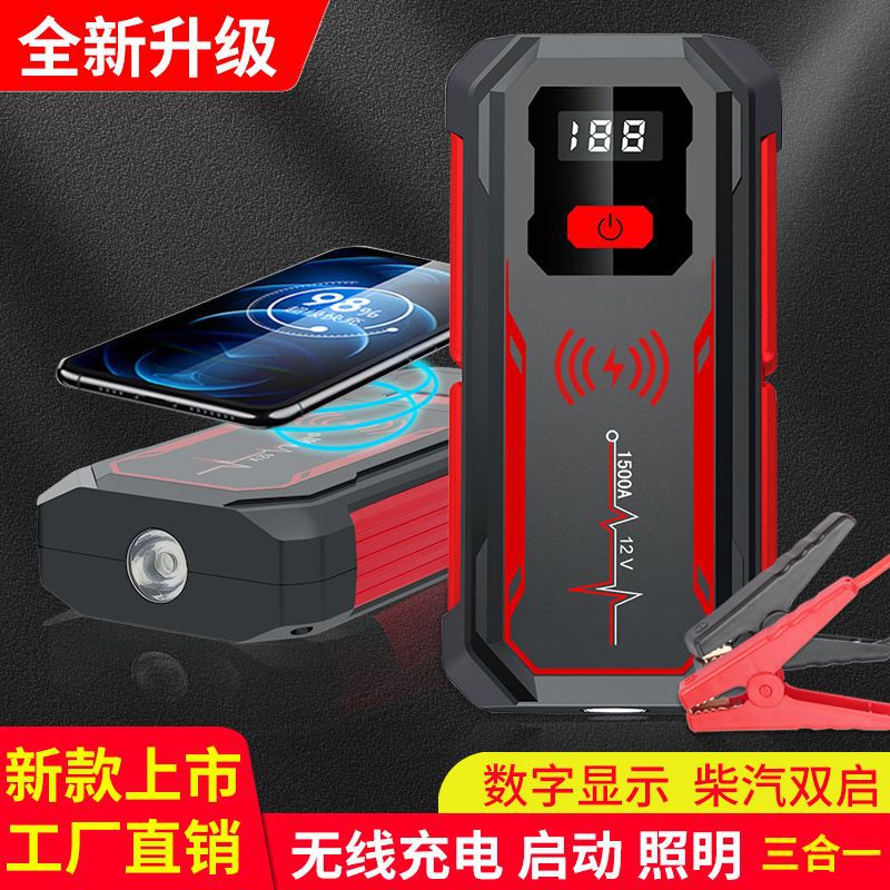 汽车应急启动电源12V手机无线充电宝大容量车载电瓶搭电打火神器