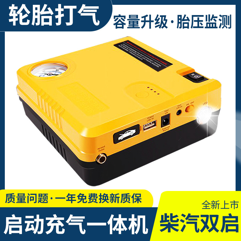 汽车应急启动电源车载轮胎启动充气泵一体机12V电瓶搭电宝过江龙