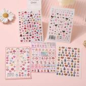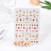 玫瑰美甲日系蝴蝶结贴纸水果草莓格子洛可可指甲贴花立体可爱兔子