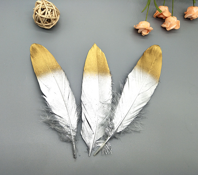 工厂大量批发鹅毛大飘喷全金全银羽毛 礼盒纸卡书签装饰 饰品配件