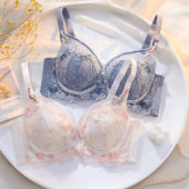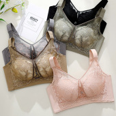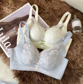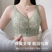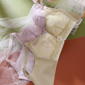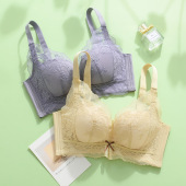 无磁春夏新品柔软中厚蕾丝无钢圈内衣女中小胸聚拢收副乳文胸女士