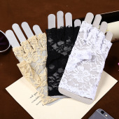 短款网纱防晒手套黑色蕾丝花边珠子蝴蝶结 新娘婚纱礼服手套批发