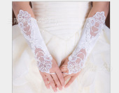 新娘手套长款白色婚纱礼服写真礼仪演出蕾丝薄款网纱手套蕾丝手套