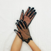 防晒蕾丝薄款手套复古优雅镂空黑色花边新娘性感婚纱短款网纱手套