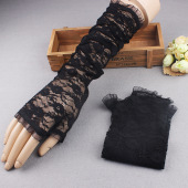 长款蕾丝手套夏季防晒分指袖套舞台表演装扮手袖婚庆网纱手套婚纱
