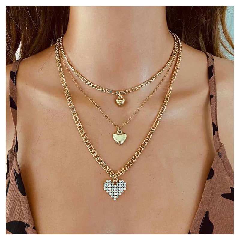 欧美跨境简约风项链 Necklace 复古合金心形吊坠多层项饰 7260