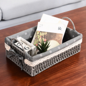 藤编收纳筐子布艺桌面零食框收纳篮子杂物草编收纳盒置物篮编织蓝