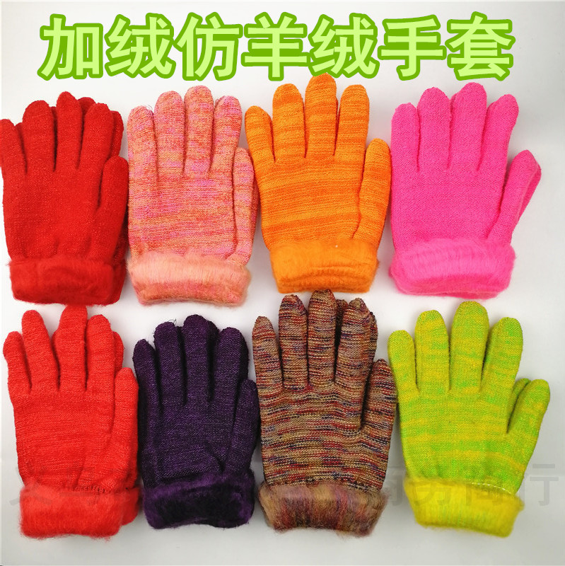 成人加绒地摊10元模式仿羊绒手套赠品冬季加绒加厚保暖手套批发