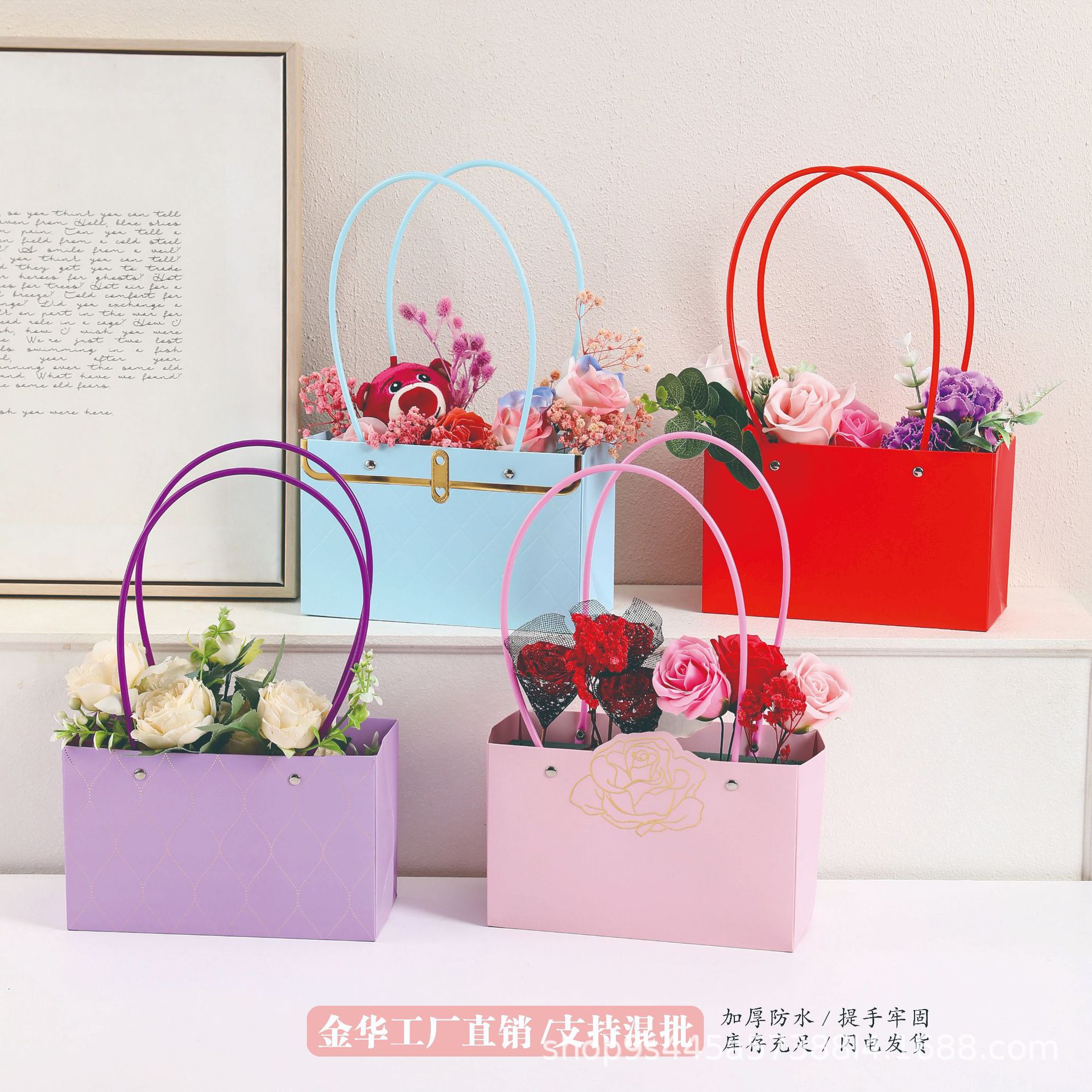 浪漫新款情人节鲜花手提袋花艺插花包装材料盒高档礼物袋厂家批发