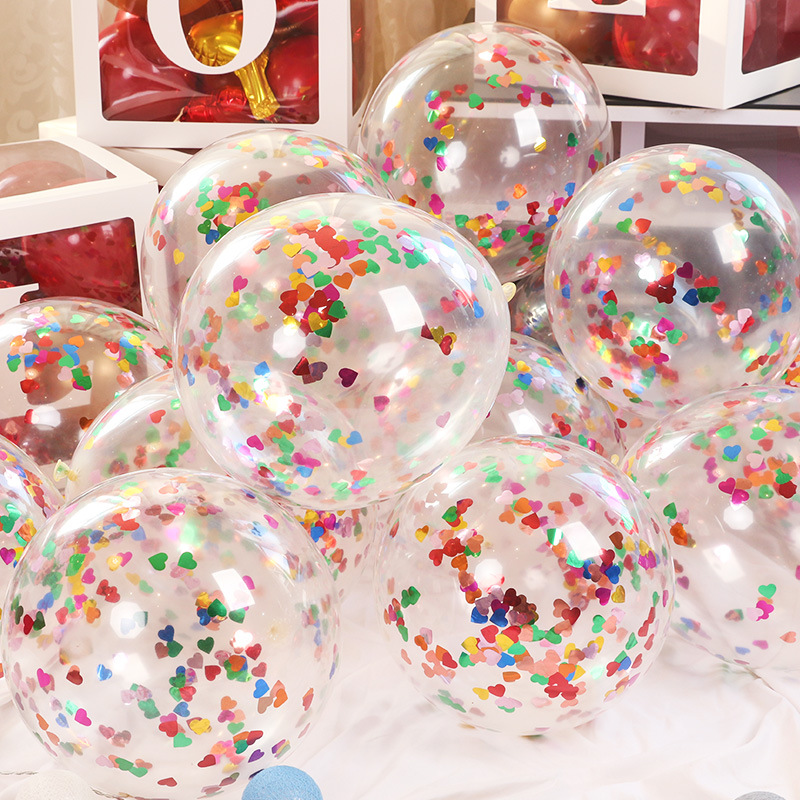 12寸圆形透明气球 2.8克加厚乳胶亮片纸屑气球婚庆装饰气球