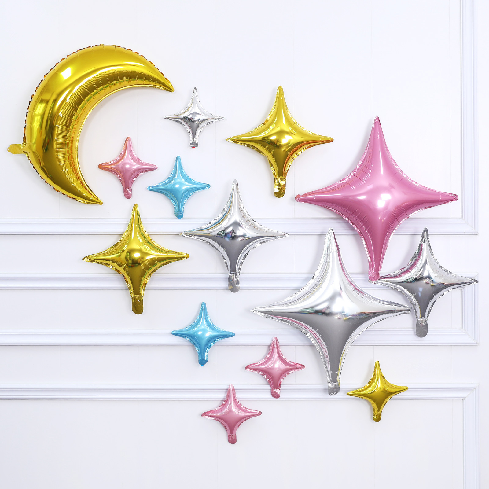 派对装饰铝膜四角星星气球 月亮皇冠宝宝生日背景墙布置定制批发
