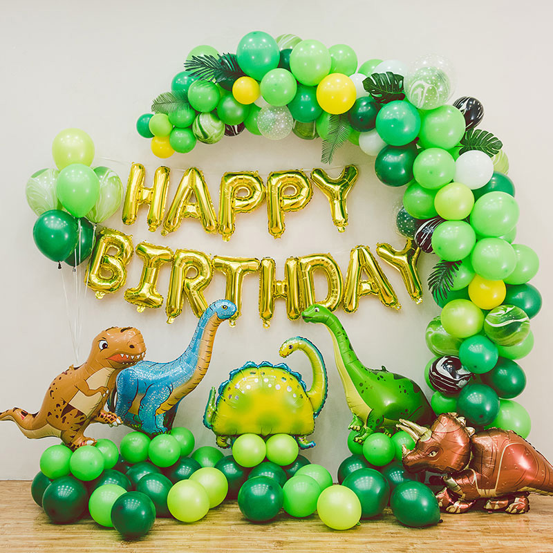 节日派对生日用品铝膜气球乳胶气球新丛林派对装饰恐龙拱门气球套