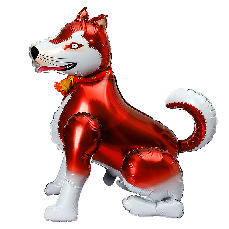 3D立体动物气球生日派对装饰布置铝膜气球卡通二哈大狼狗站立气球