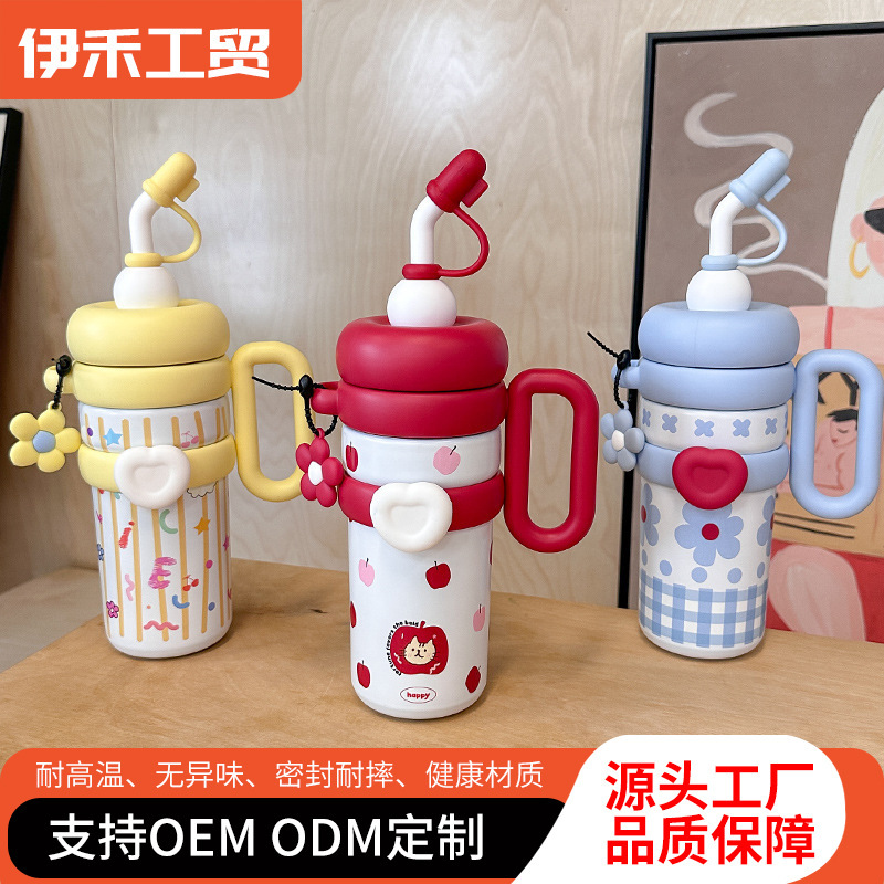吸管保温杯女2024新款大容量杯子不锈钢内胆保冷水新款咖啡杯