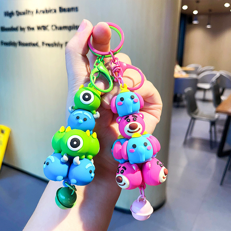 草莓熊叠叠乐大眼仔钥匙扣挂饰pvc车钥匙链精致情侣包包挂件批发