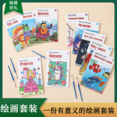 水彩涂色本自带颜料小学生外贸沾水画动漫填色本水画本涂鸦本跨境