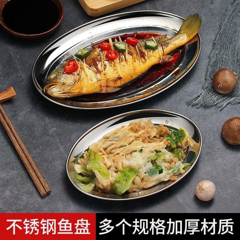 蒸鲈鱼专用盘子不锈钢过年蒸鱼盘烧烤盘椭圆形加深鱼形旦形深盘新