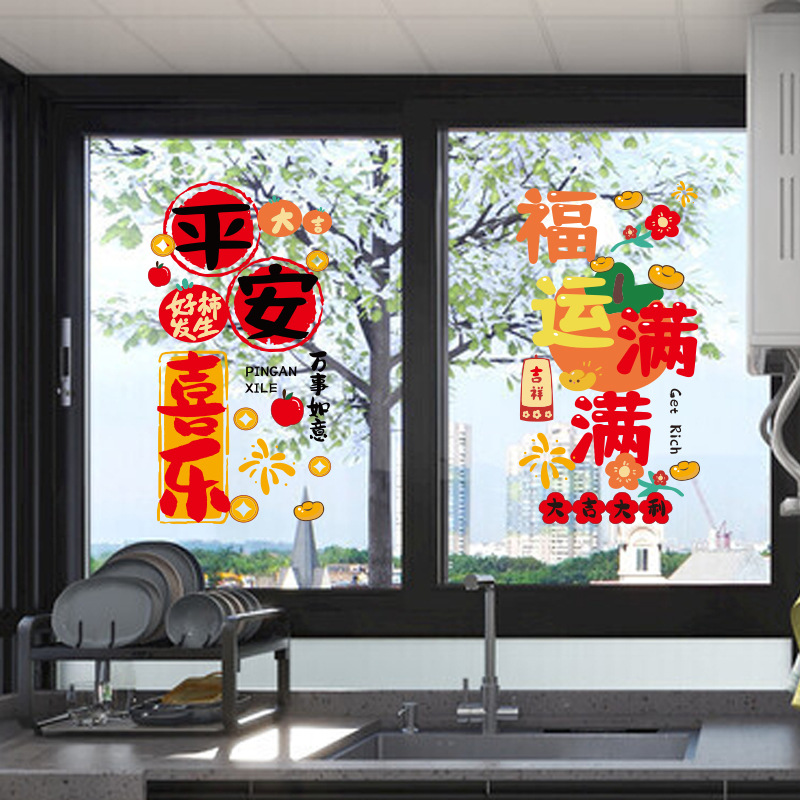 新年玻璃门贴纸厨房窗户装饰静电贴乔迁之喜新居入宅搬家布置用品