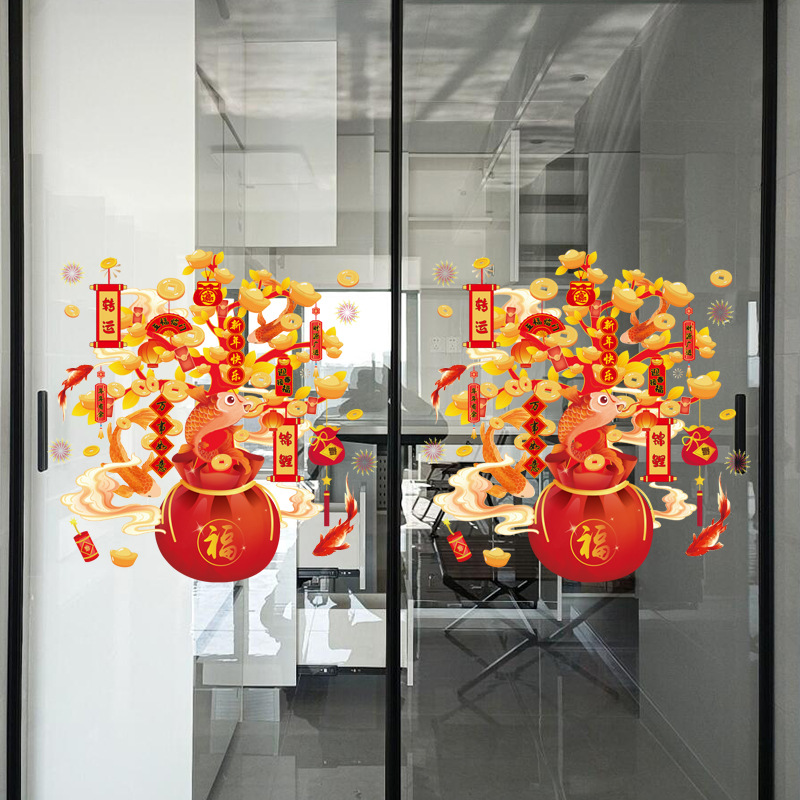 2026新款窗花静电贴马年春节装饰发财树窗户玻璃贴纸喜庆新年窗花