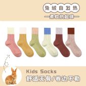 2025春秋新款兔绒童袜拼色加厚中筒堆堆保暖多巴胺男女童宝宝袜 h