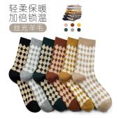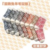 2025春季兔羊毛双针双路大方格女袜加厚保暖圣诞民族风秋冬中筒堆