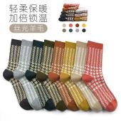 2025年春季新款双针双路丝光羊毛女袜千鸟格中筒秋冬堆堆ins时尚