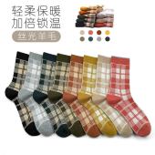 2025年春季新款双针双路丝光羊毛女袜方格中筒秋冬堆堆ins时尚