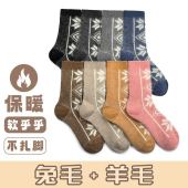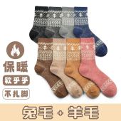 2025春季兔羊毛双针双路雪花女袜加厚保暖圣诞民族风秋冬中筒堆堆