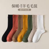 羊毛袜子男秋冬季中筒袜杠条羊毛男袜羊毛男袜复古百搭学院风保暖