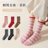 2025春秋新款兔羊毛中筒女袜粗线日系堆堆袜加厚保暖民族风 竖条