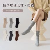 堆堆袜子女秋冬款中筒袜晴棉竖条堆堆袜透气吸汗纯色简约百搭棉袜