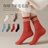 羊毛混纺袜子女秋冬季中筒袜小腿袜显瘦防滑jk袜子批发 //de