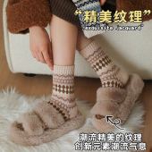 2025秋冬新款费尔岛兔羊毛小鹿花边毛圈女袜加厚保暖复古中筒袜 h