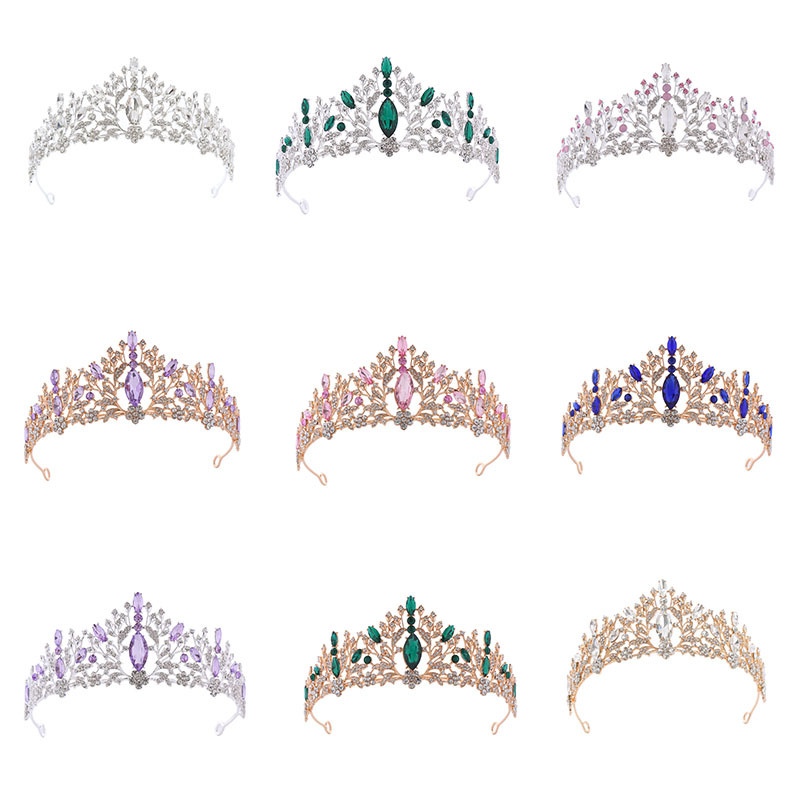 欧式跨境新娘皇冠合金发饰婚纱水钻发箍电镀生日王冠晚宴结婚头饰