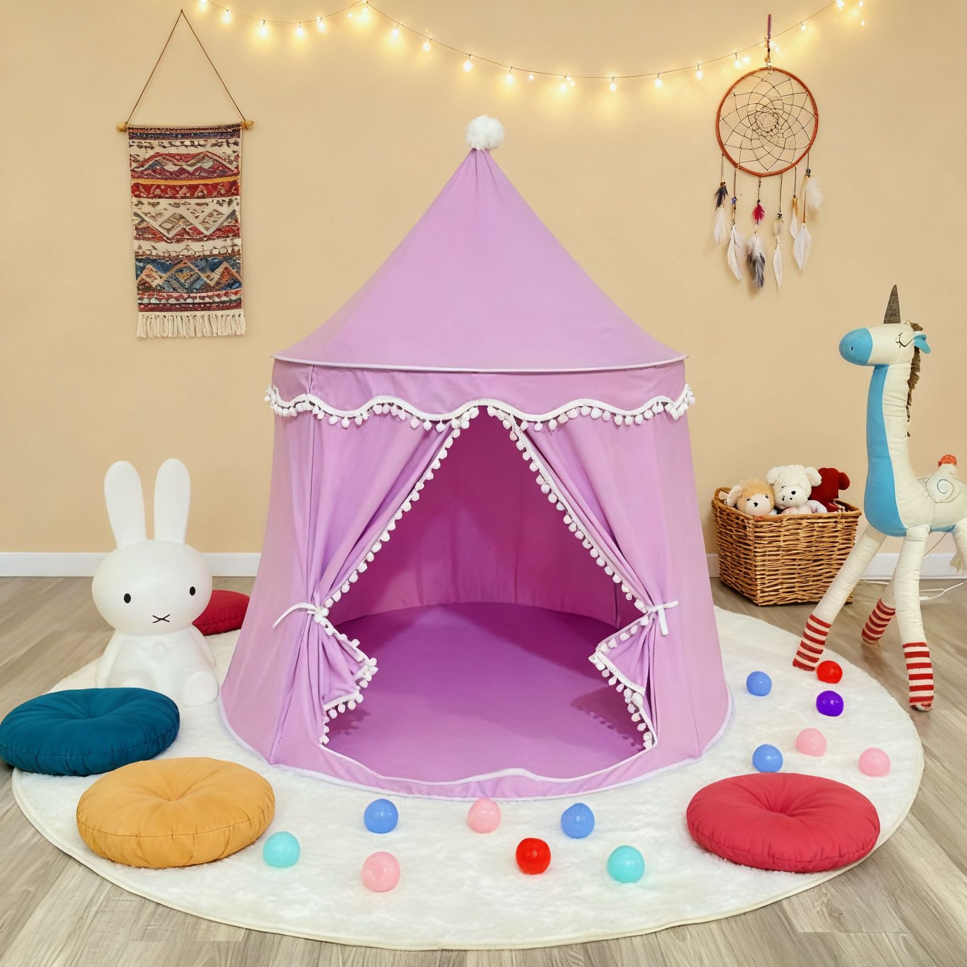 儿童帐篷室内批发跨境桃皮绒蒙古包紫白色点缀温馨女孩城堡游戏屋