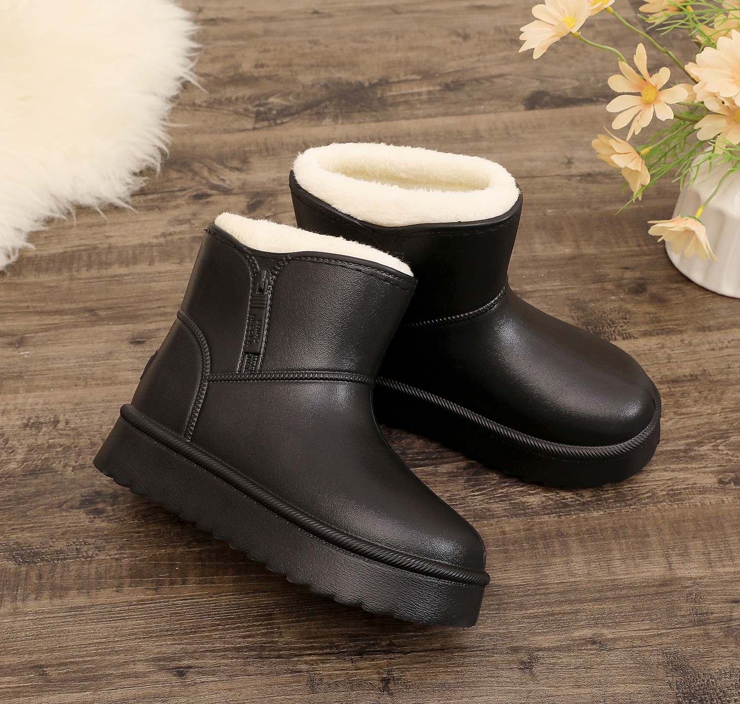 毛绒雪地靴女2025新款短筒四季加绒四季保暖厚底防水防滑韩版百搭