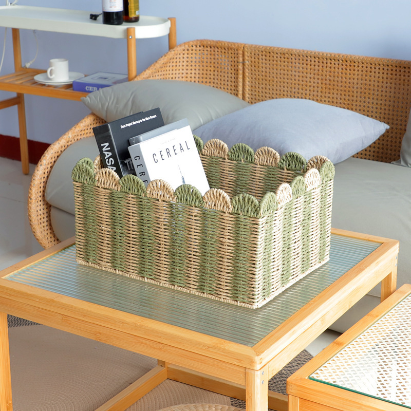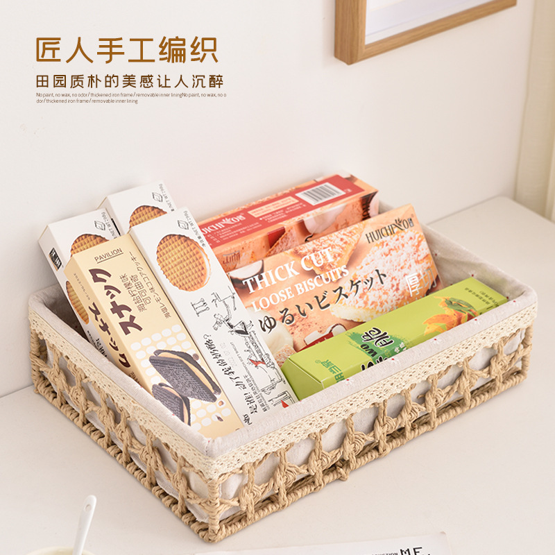 花边纸绳桌面收纳盒藤编收纳筐化妆品钥匙零食整理家用储物收纳篮