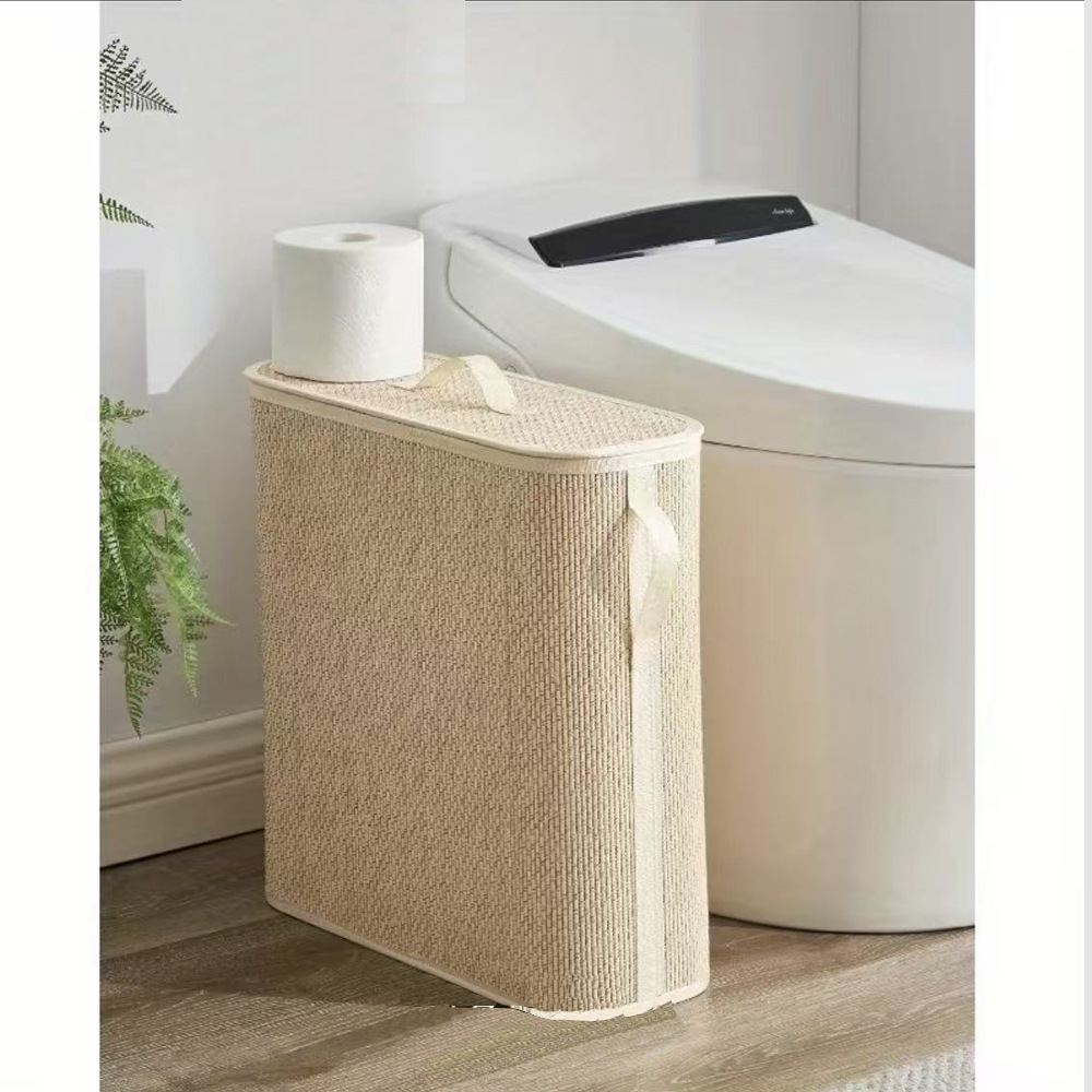 浅色多线可折叠竹子收纳箱防潮防尘杂物带盖卷纸储物箱 洗衣篮脏