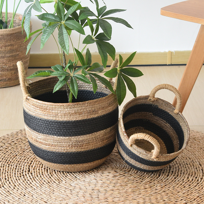 香蕉绳绿植花盆藤编织手提插花植物篮子藤编盆栽阳台草编植物花篮