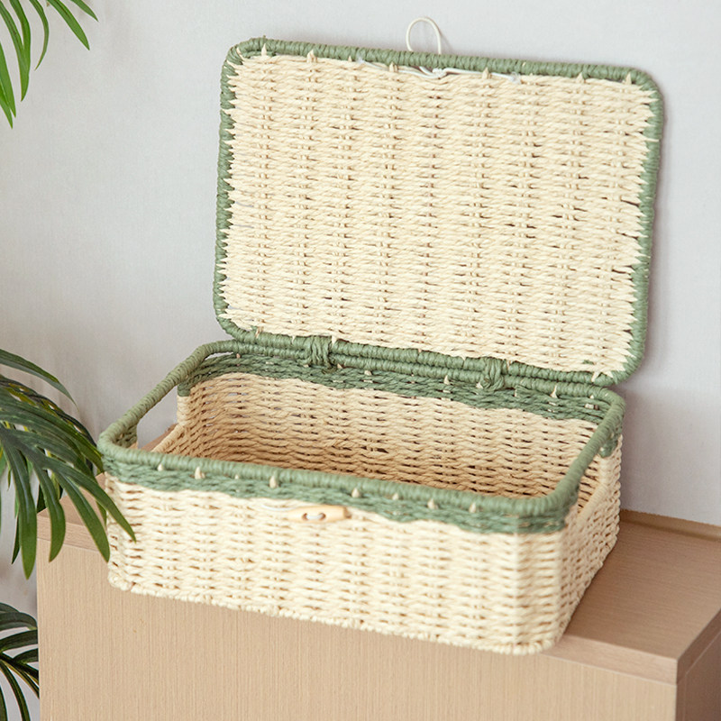 √桌面杂物整理收纳篮藤编钥匙遥控器收纳盒纸绳筐编织框零食莉仰