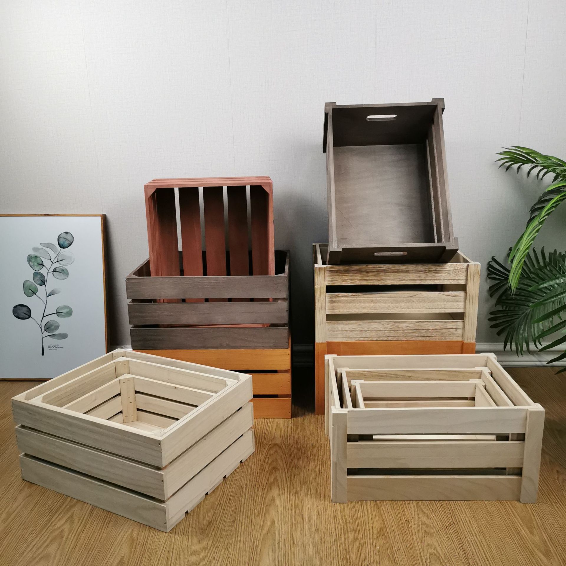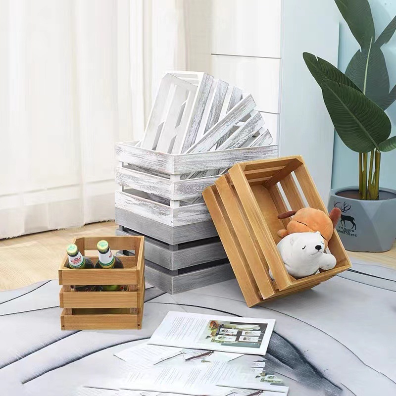 跨境木质收纳箱 大容量长方形木条收纳筐 杂物家用超市物品收纳盒