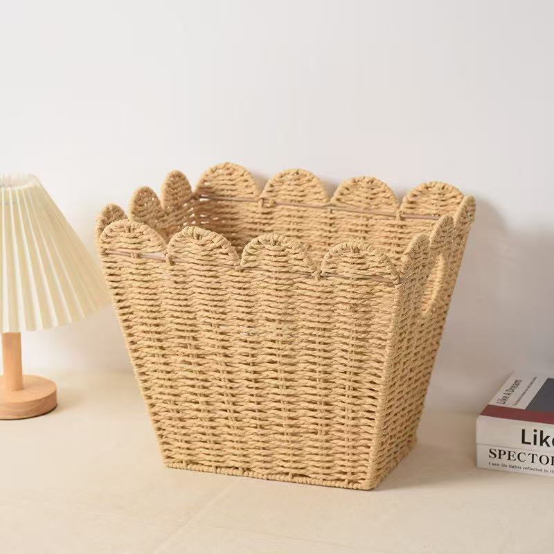 定制跨境热销纸绳收纳篮花边纸绳收纳筐大容量客厅卧室摆放收纳篮